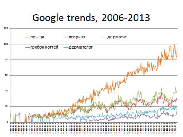Рис. 1. Динамика «дерматологических» запросов в Google Trends за 8 лет